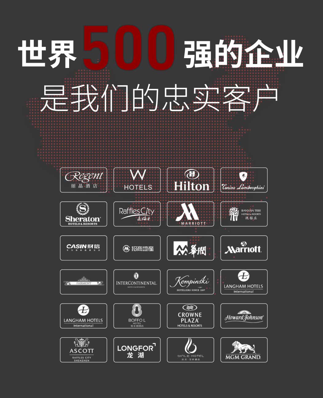 近1000家別墅私宅/累計超300家星級酒店/商業地產/會所等合作服務